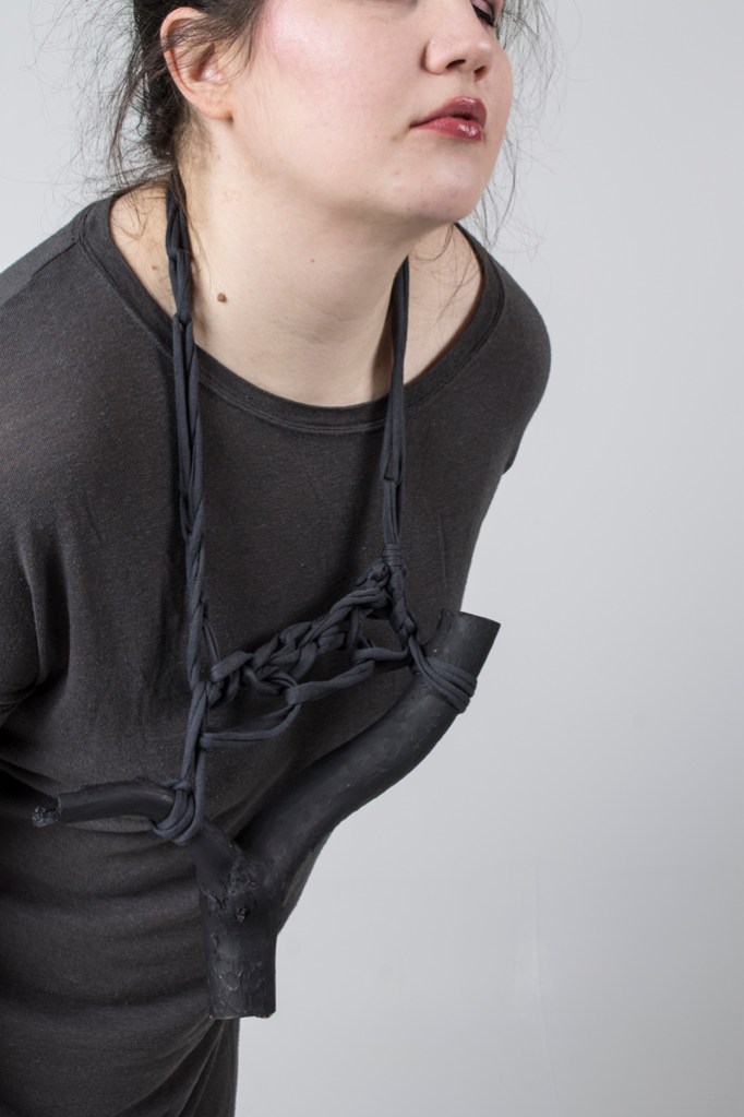 The installation consists of techniques of sculpture and jewellery art; and the installation itself contains some wearable pieces, that are called Ansarikukkia.