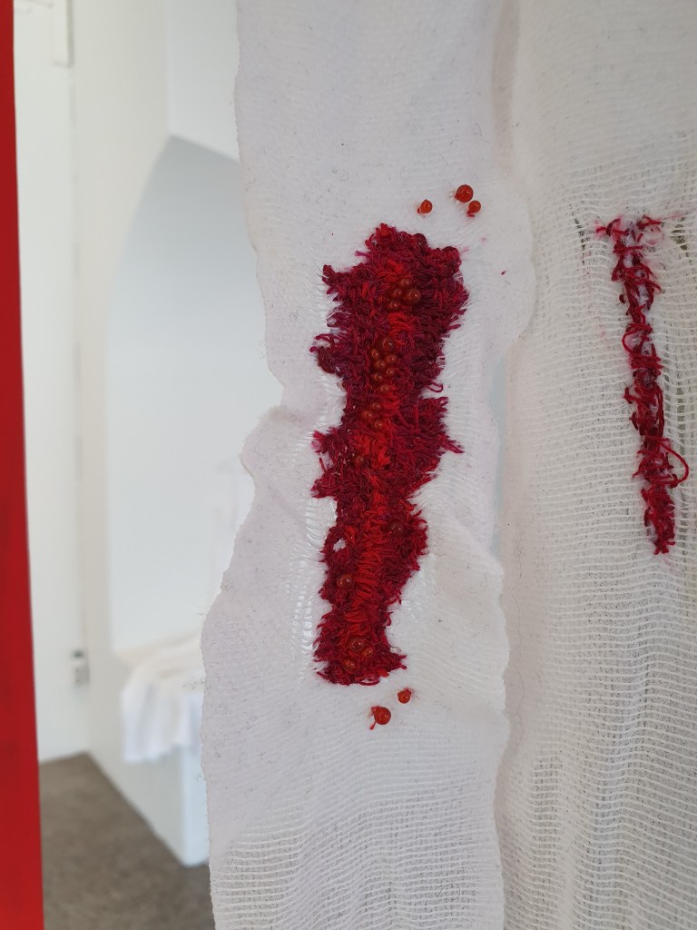 Kostiainen esittää välitilinpäätöksen kolmen vuoden mittaisesta tutkimusmatkasta, jonka aikana on kaivettu luut esiin ja pidetty ahdistusta kädessä. Nyt esillä olevat teokset käsittelevät kipua, epävarmuutta ja vaikeiden tunteiden käsittelyä. Muistot ja tunteet puskevat läpi, vaikka niitä kuinka yrittää itsepetoksen elkein häivyttää, peitellä ja paikata.